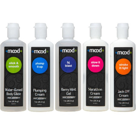 Lame, gotea, frota, rellena y explora con Mood Pleasure for Him agentes líquidos estimulantes diseñado específicamente para adaptarse a su estado de ánimo y placeres deseados, ya sea durante el juego en solitario o compartido.