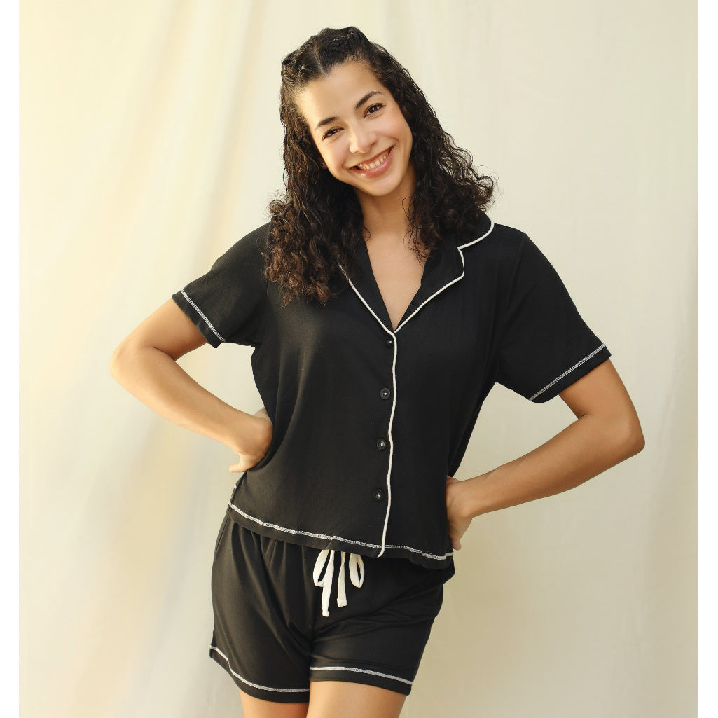 Disfruta de noches cómodas y elegantes con nuestro Pijama Corta Tea Time. Confeccionado con telas suaves y transpirables, este diseño combina estilo vintage con comodidad moderna. Perfecto para relajarte en casa o dormir con confianza, sus cortes ajustados realzan tu figura mientras mantienen la libertad de movimiento. Ideal para climas cálidos, este pijama se convierte en tu aliado favorito para descansar con clase. ¡Siéntete hermosa cada noche!