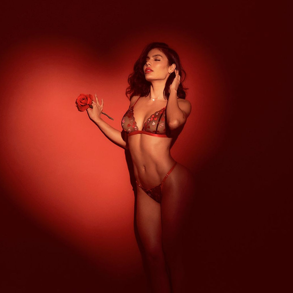 Este conjunto de mesh con hermosos corazones es delicado y femenino. Realza tu estilo y agrega un toque romántico a tu atuendo. ¡Haz que tu look sea más encantador con este conjunto!