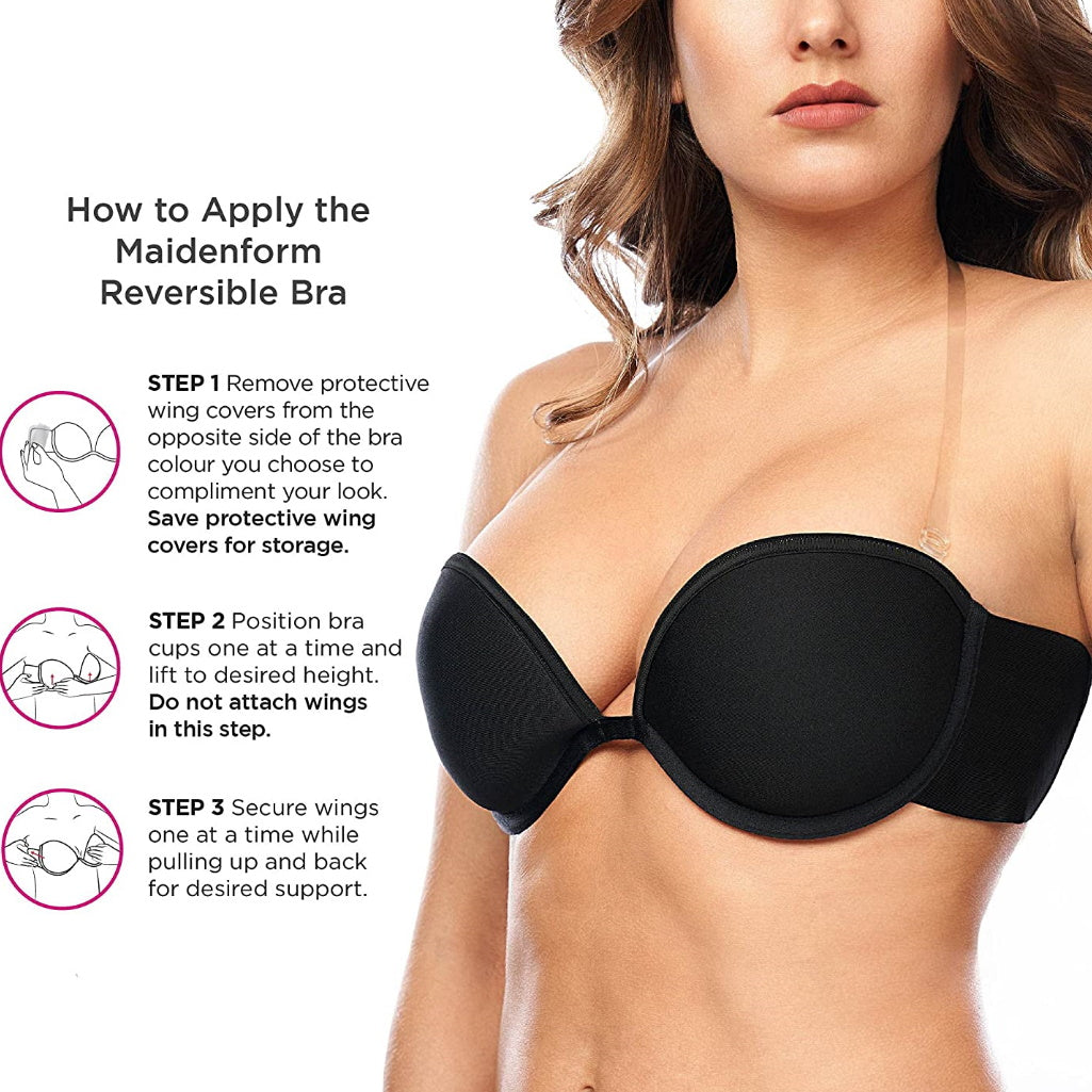 Nuevo Sujetador reversible perfecto para estilos sin espalda, sin tirantes, tipo halter o escotados, copas de espuma suave y livianas , en lo laterales alas reutilizables de doble cara trae incluidos un juego de tirantes para mayor versatilidad, Las instrucciones detalladas se incluyen dentro del paquete.