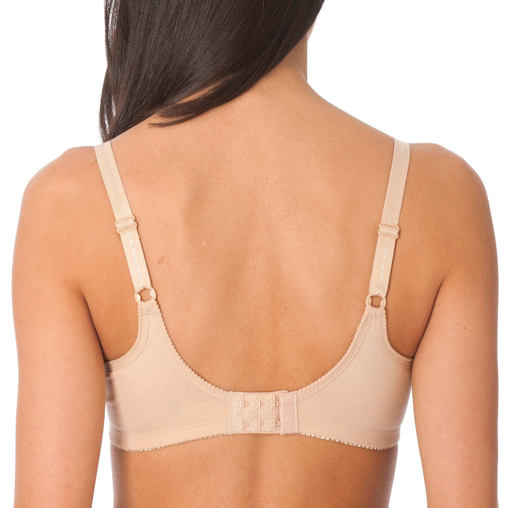 Disfruta de la comodidad y la frescura con este sujetador que fusiona la calidez del algodón con un ajuste impecable, copas moldeadas sin rellenos ni costuras para garantizar comodidad y soporte. No tiene varillas y los tirantes son ajustables (tejido 90% algodón y 10% elastano)