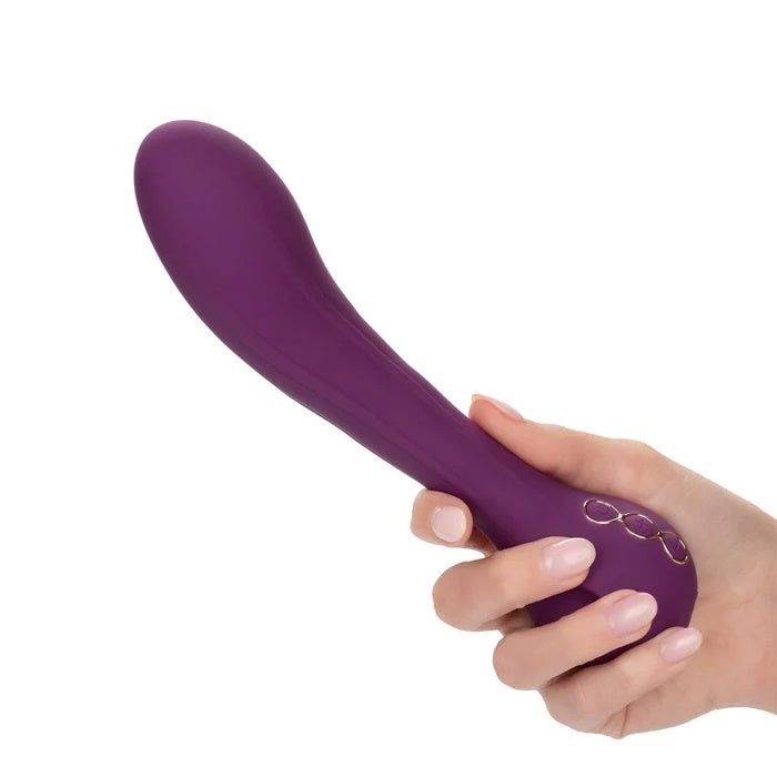 El vibrador Obsession Passion es un vibrador para el punto G que cuenta con un eje curvo y una cabeza pronunciada para la estimulación interna. Las 10 potentes funciones de vibración se controlan mediante la interfaz de dos botones con hermosos detalles de hardware de color dorado. Recargable por USB. Tiempo de carga: 2,5 horas, tiempo de reproducción: 90 minutos. Medidas: 8,5 pulgadas x 2 pulgadas.