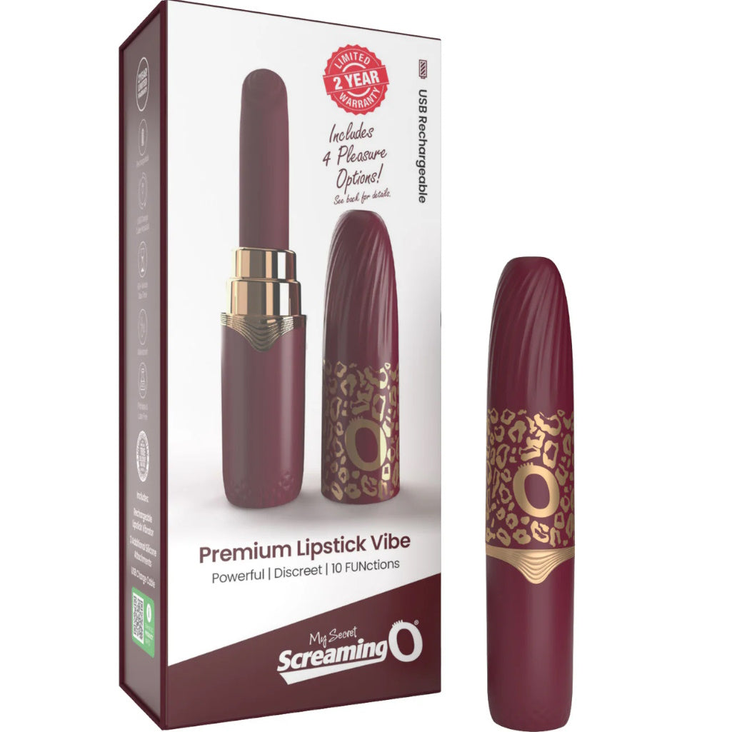 Descubra lo último en placer discreto con el vibrador de lápiz labial My Secret Screaming O Premium. Este lujoso vibrador de lápiz labial recargable ofrece 10 potentes funciones de vibración, lo que garantiza una variedad de sensaciones emocionantes que se adaptan a todos sus estados de ánimo. Fabricado con silicona auténtica, el vibrador de lápiz labial Premium incluye un sistema de puntas intercambiables que cuenta con cuatro puntas de silicona únicas, cada una diseñada para una experiencia distinta. La clásica punta de lápiz labial brinda una estimulación precisa, perfecta para apuntar a áreas sensibles. Cambie a la punta estilo rímel para una sensación suave y envolvente, o a la punta estilo cepillo curvo para vibraciones suaves y acariciadoras. Para un toque divertido, la punta estilo mariposa agrega emoción aleteante a sus momentos íntimos. Diseñado teniendo en cuenta la comodidad y la elegancia, este vibrador es completamente resistente al agua, lo que lo hace ideal para el baño y la ducha. Ofrece hasta 60 minutos de uso continuo con una sola carga, lo que brinda tiempo suficiente para la exploración y el placer. Medidas: Lápiz labial con tapa: largo: 4,92" / 12,5 cm, diámetro 0,945" / 2,4 cm Longitud de los accesorios: Lápiz labial 1,97" / 5 cm, Curvo 2,27" / 5,75 cm, Flicker 2,28" / 5,8 cm, Flutter 2,28" / 5,8 cm