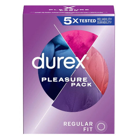 Los condones DUREX PLEASURE PACK contienen tres diferentes tipos: Durex Sensitivo, Durex Ultra Sensitivo y Durex Tropical.